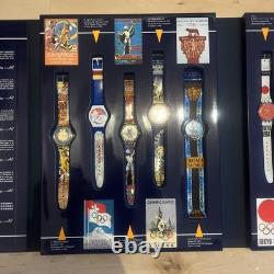 La collection limitée Swatch des Jeux Olympiques Historiques, composée de 9 montres, est une collection de montres inspirées du vintage célébrant l'esprit olympique. Chaque montre présente un design unique avec des index ronds et un bracelet en deux pièces fabriqué à partir de plastique et de denim. Le mouvement mécanique (manuel) avec un type d'échappement duplex garantit une précision de la mesure du temps.