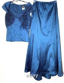 TADASHI Collection Ensemble 2 pièces Top en Taffetas Métallique Teal + Jupe Robe Sirène. Taille : 4 US = Petit.