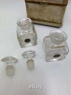 Cet ensemble de parfum antique du 19ème siècle comprend deux flacons en verre magnifiquement présentés dans un étui de voyage en velours, le tout fabriqué à Londres par la marque E Rimmel. L'artisanat fait main et l'origine du Royaume-Uni ajoutent à l'attrait de cet ensemble de collection, en faisant un ajout unique et élégant à toute collection de parfums.